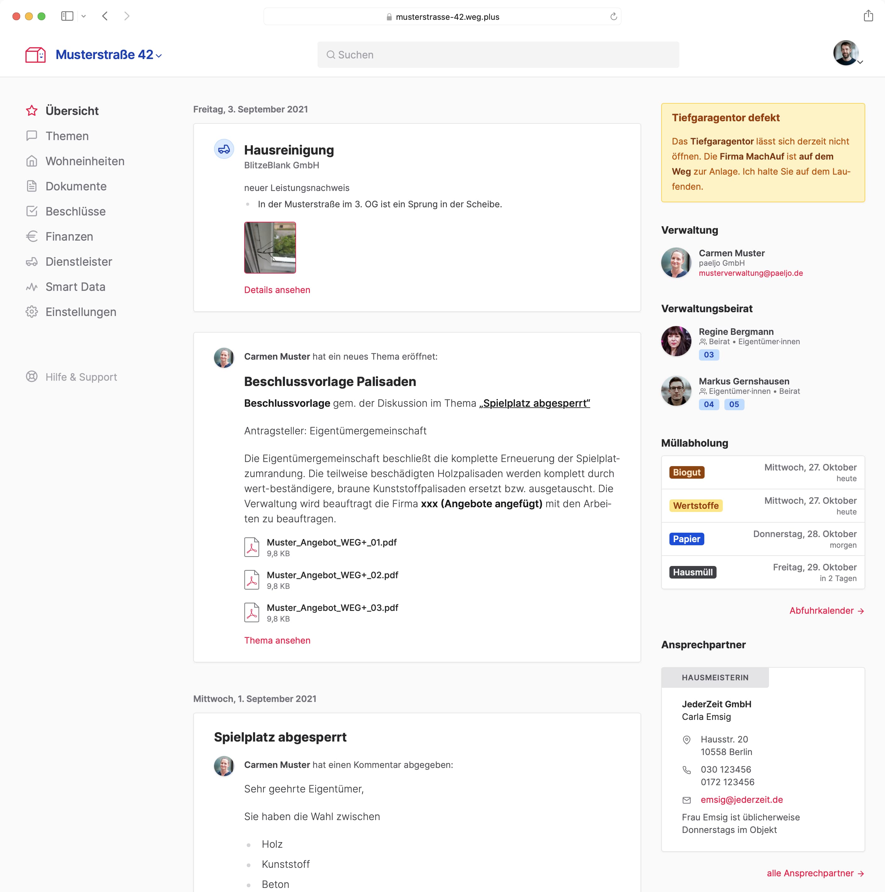 WEG+ vernetzt Eigentümer·innen und Hausverwaltung, ermöglicht allen Beteiligten jederzeit den Zugriff auf alle relevanten Unterlagen und lässt Sie auch bei größeren Maßnahmen den Überblick behalten.
